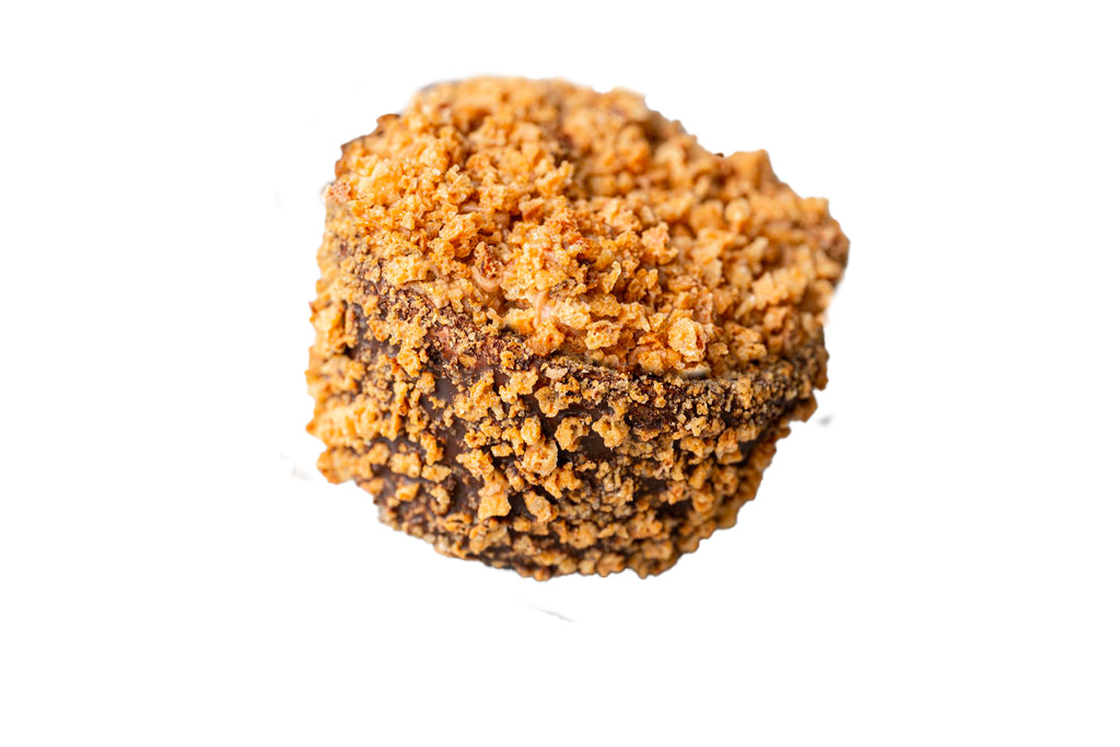 A rich chocolate-coated cestino (basket) filled with silky Amaretto di Saronno cream and topped with crunchy amaretto cookie crumbles. A perfect harmony of texture and flavour.