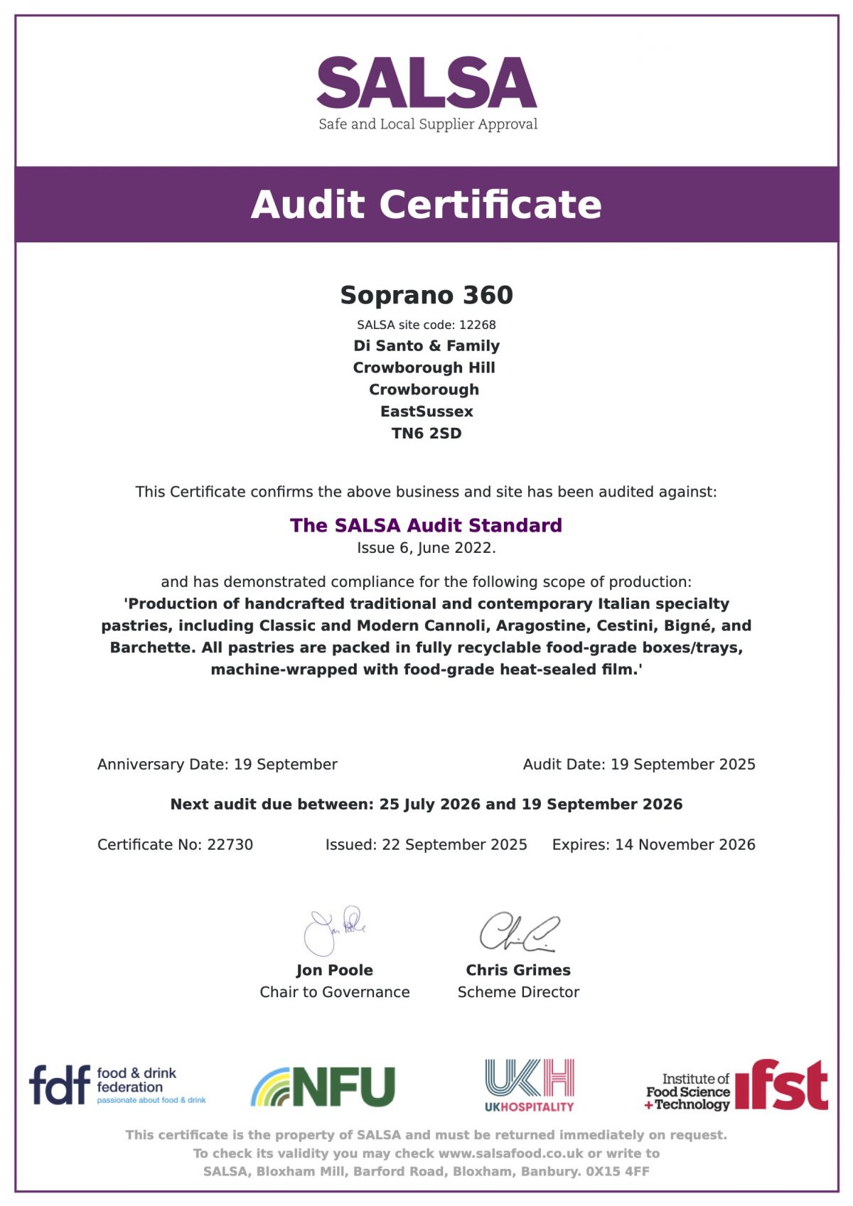 This achievement reflects our ongoing commitment to excellence and gives our customers even more confidence in every pastry we handcraft.